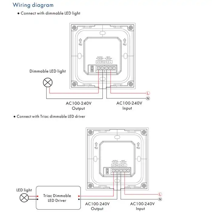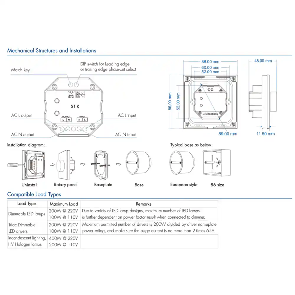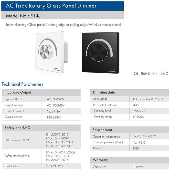 ● Rotary glass panel AC phase-cut dimmer, 1 channel output.
